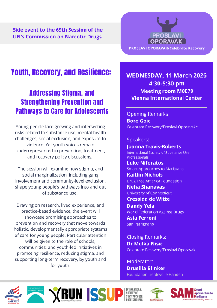 Organised by Proslavi Oporavak (Celebrate Recovery) with the support of the Drug Free America Foundation, Recovered Users Network (RUN), the San Patrignano Foundation, Smart Approaches to Marijuana and the World Federation Against Drugs