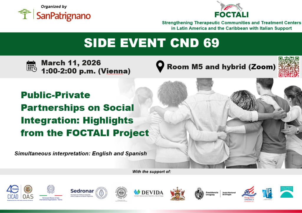 Organised by the San Patrignano Foundation with the support of Argentina, Italy, Jamaica, Trinidad and Tobago, Uruguay, the Organization of American States, the Drug Free America Foundation, the European Federation of Therapeutic Communities and the World Federation Against Drugs