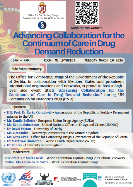 Organised by Serbia with the support of Slovenia, the UNODC Prevention, Treatment and Rehabilitation Section, the Croatian Institute of Public Health, the Drug Free America