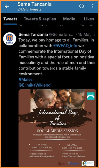On the International for Families, C-Sema in collaboration with WFAD HQ and the WFAD East and Central Africa Liaison, Office organised a two-day virtual event that aimed to emphasise the role that families play in preventing and combating substance abuse and crime in society and a one-day country workshop to Tanzania chapter members.